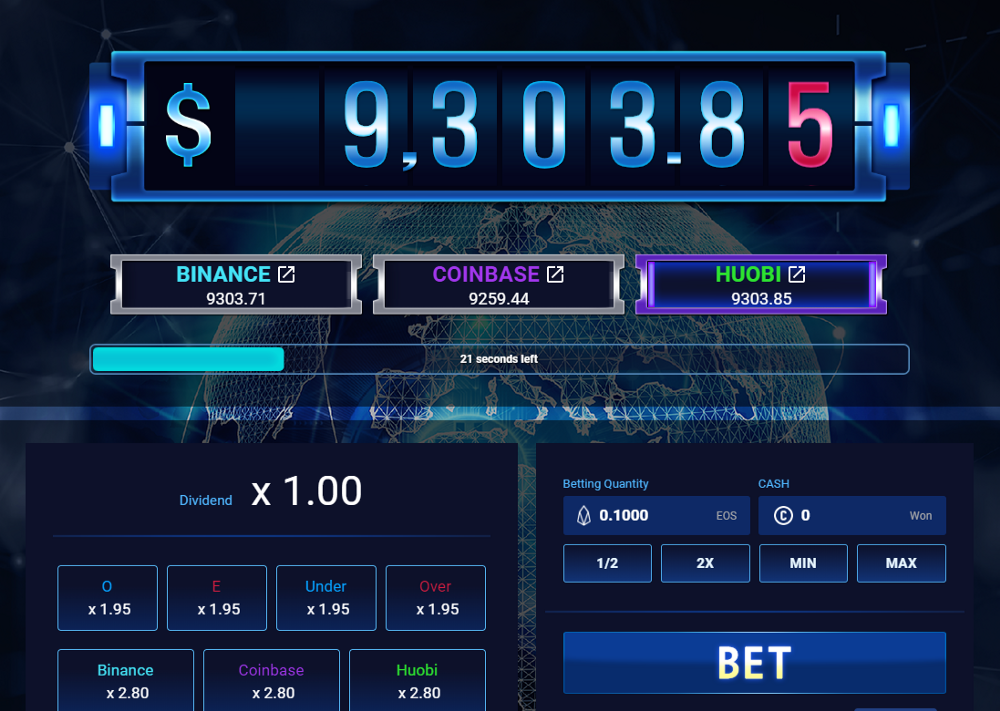 The objective of the game is to guess whether the last digit number of Bitcoin price is even or odd number in every two minutes. Since it is based on the result of high volume exchanges the result cannot be deceived.
