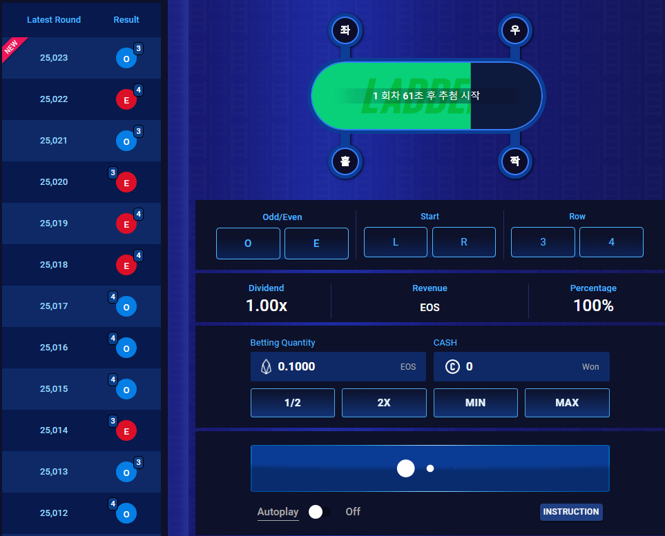 You may buy a ticket with 0.1eos (approx. 460 KRW) each and take 5,000eos when won 1st place. (Random number or choose your own number)